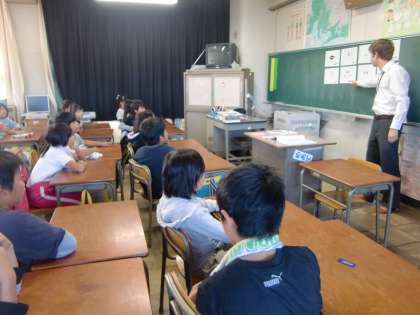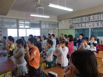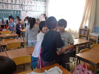 10月4日(火)の4年生 公開日 2011/10/05 更新日 2011/10/05 4年 今日は、エヴァン先生の英語の授業。みんな笑顔で、楽しそうに取り組んでいました。 授業では、体の部分の英単語について学習しました。音楽に合わせて肩やひざそしてつま先などをさわったり、ペアになって英語表現の練習を行いました。