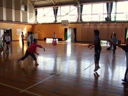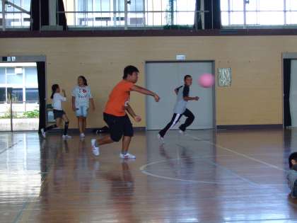 今回は、1組はリレー・バスケットボール・ドッジビーの3本立て、2組はドッジボール大会を行いました。