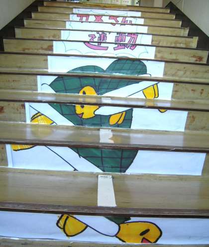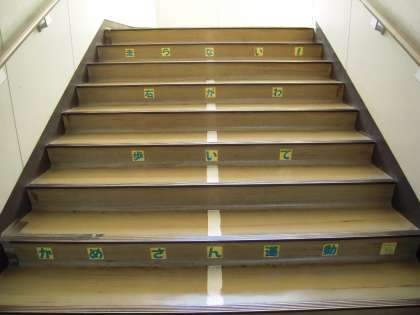 ところで、校内でも先週から「かめさん運動」が展開されています。どの子も、廊下や階段など右側を静かに歩く習慣がつけば、ケガや事故とは無縁になることでしょう。写真のように階段に注意を呼びかける掲示物を取りつけました。みんなで、安心・安全な学校にしていきましょう。