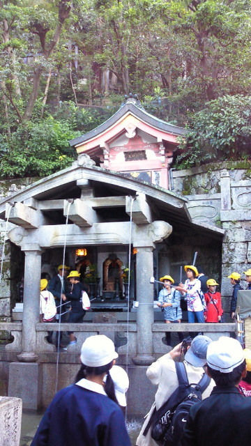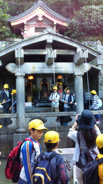 清水寺の見学と買い物を終えたところです。行楽シーズンですごい人の中、楽しんでいます。