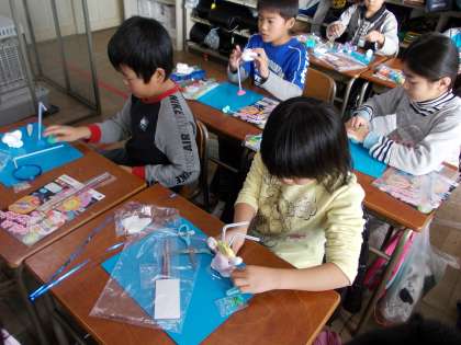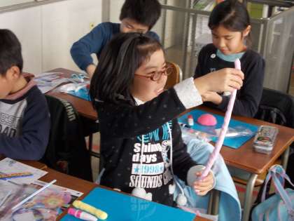 やさしいモンスター (1月18日 3年生) 公開日 2012/01/18 更新日 2012/01/18 3年 図工で、紙粘土やモール、ストローを使って、自分の想像したモンスターをつくりました。モンスターといっても、名前の通り「やさしいモンスター」になるように、やさしい表情や色遣いを工夫しました。絵の具を使ってのカラー粘土作りも楽しみました。でき上がったモンスターに愛着を持って、名前を付ける子もいました。