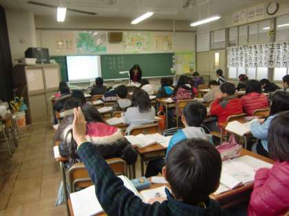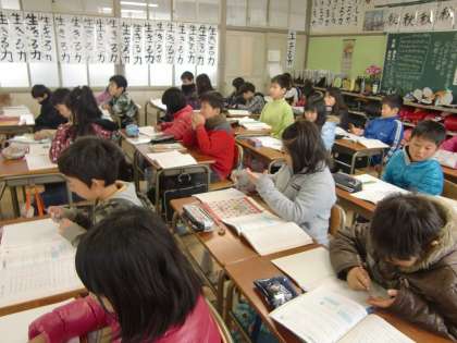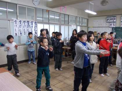 1月19日(木)の4年生 公開日 2012/01/19 更新日 2012/01/19 4年 今日は、算数で分数のまとめを行いました。帯分数、仮分数の変換や同分母のたし算、ひき算の練習をしました。テストまでにしっかりと定着を図っていきたいと思います。 【写真1、2枚目】算数の分数を学習中。 【写真3枚目】学芸会の歌の練習中。