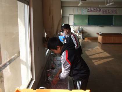 時間のとれる子に、学芸会で使う背景パネルの色塗りに来てくれるよう声かけをしたところ、休日にもかかわらず、多くの子が、手伝いに来てくれました。