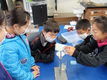 【1、2枚目】理科で、ろ過の実験を行いました。ホウ酸水溶液と食塩水をろ過しました。