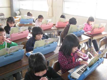 2組は、鍵盤ハーモニカで一生懸命「きらきらぼし」を練習中!