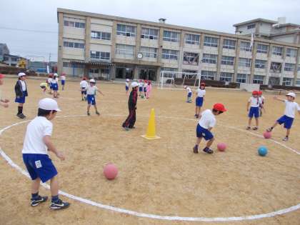 3組は、体育の授業で「ボールけり」をしています。