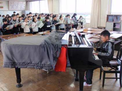 2月13日(月)の5年生 公開日 2012/02/13 更新日 2012/02/13 5年 【1枚目】学年合同で卒業式の歌の練習をしました。本番と同じように児童による伴奏で練習しました。 【2、3枚目】子どもたちが作ったお米の精米に行ってきました。水曜日に炊いて、おにぎりにします。最終的に4kgの収穫になりました。