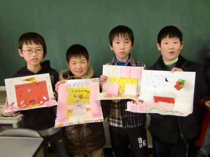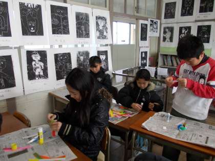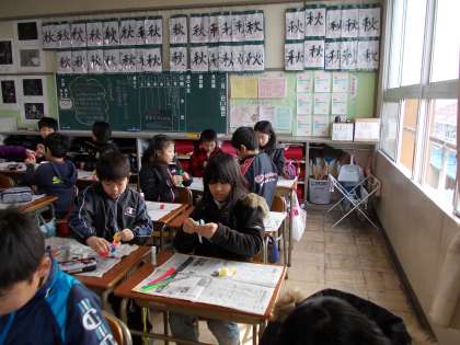 みんなで分担して、輪を作り、それらをつなぎ合わせました。みんなで今までお世話になった6年生をお祝いする準備をしています。