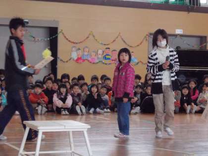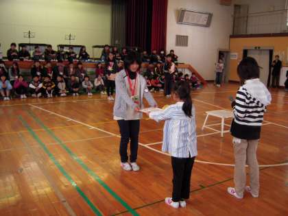 ありがとう 6年生 【1年生 3月5日】 公開日 2012/03/05 更新日 2012/03/05 1年 今日は、「6年生を送る会」で卒業生に感謝の歌をプレゼントしました。 通学班や清掃活動でお世話になったこと、困っているときにたすけてもらったことを思い出しながら、心をこめて歌っていました。 中学校へ行っても、がんばってほしいと思います。