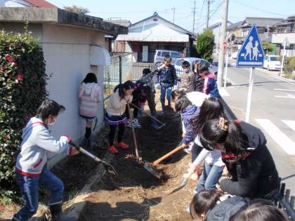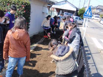 そして、6年生の理科で学習することになるジャガイモをそこに植えます。