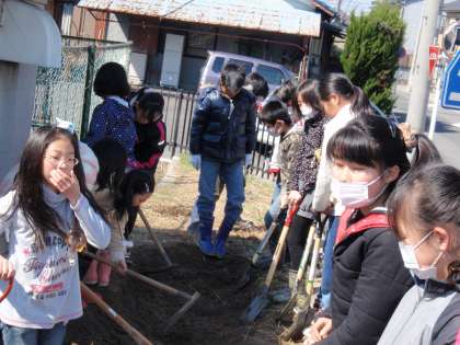 学年園を畑に戻すところまでできたので、次は畝を作ります。