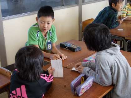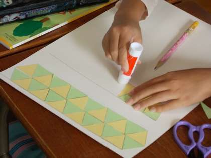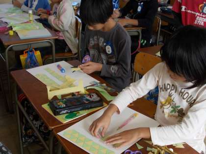 今日の3年生 【10月24日(水)】 公開日 2012/10/24 更新日 2012/10/24 3年 学級で、いじめ防止のスローガンを考えました。いじめのない、笑顔いっぱいのクラスにするために、みんなで意見を出し合いました。 算数では、三角形を勉強しています。今日は、新しく習った正三角形と二等辺三角形を使って、形のしきつめを行いました。長さの同じ辺同士を組み合わせて模様を作っていきます。きれいにしきつめることができたかな?