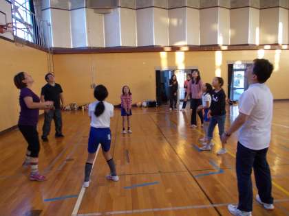 月曜日の4時からのソフトバレーは、男性の先生方や保護者の皆さん合わせて15名で行われました。いつものように円陣パスでウォームアップを行います。人数が増えたのでナイスカバーもたくさん出ましたが、お見合いも多くなっていました。しかし、徐々に技能の高まりを感じることができるようにもなっています。十分にアップができたらチーム分けです。今日は4チーム作ることができました。人数が増えると活気が出ていいものです。時間を見つけてどしどしご参加ください。お待ちいたしております。