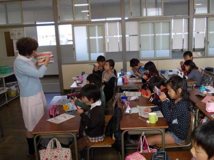 歯の勉強をしました (11月14日 3年生) 公開日 2012/11/14 更新日 2012/11/14 3年 学校歯科医の野田先生と歯科衛生士の方に来ていただき、虫歯の原因や正しい歯の磨き方を教えていただきました。 教室では、歯に残った染めだし液がきれいになるまで、鏡を見ながらいっしょうけんめいブラッシングをしました。歯によって磨き方が違うので、歯ブラシの持ち方を替えながら磨きました。家でもぜひ続けていけるといいですね!