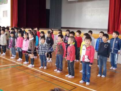 全校児童や先生たちを前に、堂々とした姿はとても立派でした。