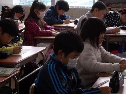 また、3,4時間目は、全校で映画を鑑賞しました。登場人物のもも子がみんなに教えてくれたことは何だったのか。それを考えてまとめをし、人権についてあらためて見つめ直しました。(2枚目の写真)