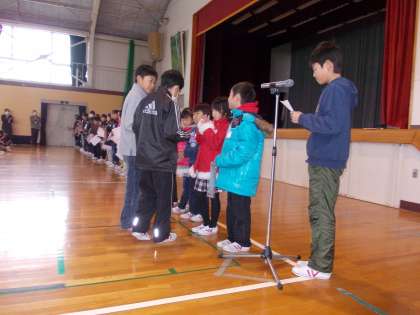 今日の集会で、花まるナイス賞受賞者の表彰がありました。2学期の表彰ポイントは、友達に優しい声かけや思いやりのある行動がとれたかということです。クラスから男女一人ずつが選ばれました。名前を呼ばれると、1年生の子は大きな声で返事ができました。とても凛々しかったと思います。