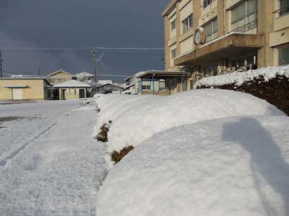 日曜日から降り出した雪が積もりました。校庭も一面の雪景色です。子どもたちは積もった雪を楽しそうに踏みしめながら登校してきました。手にはそれぞれ雪玉を持っていたりしています。先生方は早くから子どもたちが滑って転ばないように、校内の雪かきをしてくれました。本格的な冬を迎えています。