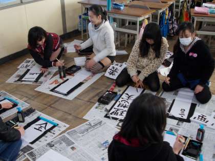 2組で書き初めを行いました。それぞれが思い思いの字を書きました。