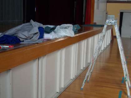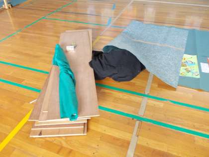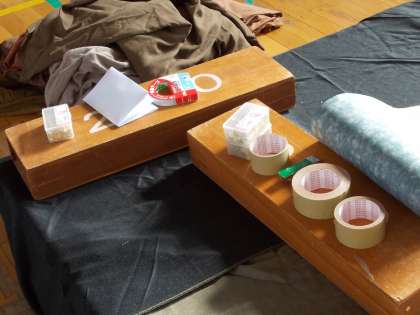 いろいろな材料や道具を使い準備しています。高所での作業も入りますから、先生方には十分注意して行ってほしいと思います。