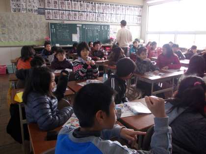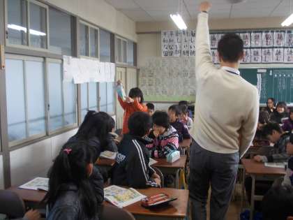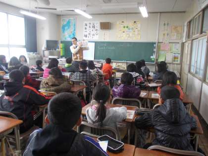 英語活動 【1月21日(月)の5年生】 公開日 2013/01/21 更新日 2013/01/21 5年 今日、3学期初の英会話指導助手と一緒の英語活動がありました。3学期からはデーヴィッド先生に替わりました。何度も発音を聞かせていただき、唇をかんでの発音や舌の使い方など細かなところまで教えていただきました。