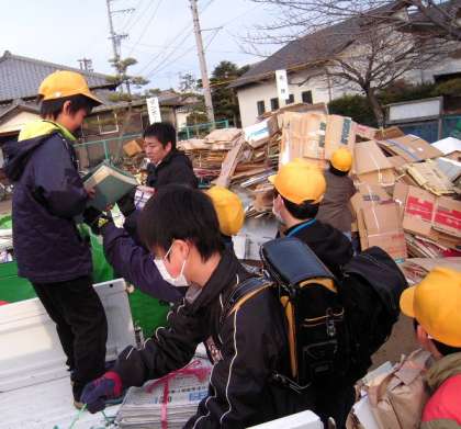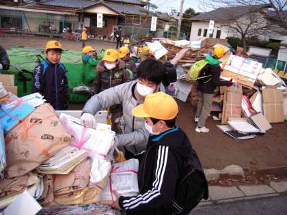 前日の昼休みの時間に美化・環境委員の子たちが資源ごみを倉庫から搬出してくれました。そして、本日の早朝から職員が集まり、それらをトラックに積み込み、集積場である大日比野神社まで運びました。到着した7時半過ぎには、すでに地域の方たちが仕分け等の仕事にいそしんでおられました。トラックにいっぱいあった資源ごみも地域の方やお手伝いをしてくれた児童の協力のおかげで、またたく間に仕分け袋に収まっていきました。たくさんの人の手助けに感謝いたします。