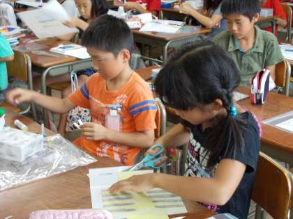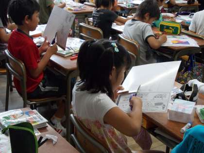 雨にも負けず頑張っています その2 (7月3日の3年生) 公開日 2013/07/03 更新日 2013/07/03 3年 3年2組の図工の時間では、「風で浮かぶおもちゃ作り」に取り組みました。好きな模様や絵を描いたり、はさみやのりを使って箱を組み立てたりとどの子も熱心に取り組みました。実際に浮かばせることができるかどうか、とても楽しみです。