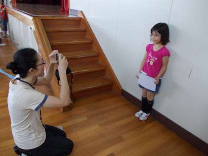 代表委員が表彰者の紹介メッセージを直前まで練習しています。表彰が終わり一人一人の写真を撮りました。ちょっと緊張!かな?