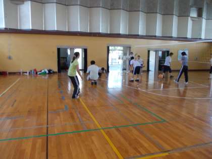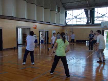 浅井中小学校サポート隊主催「親子ソフトバレー」【7月8日(月)】 公開日 2013/07/09 更新日 2013/07/09 PTA・学校運営協議会 梅雨明けを伝えるかのような太陽が照りつける一日となりました。すこし日が陰った本校の体育館では、今日もソフトバレーがおこなわれています。少し遅れていくと子どもたちは汗だくで休憩状態で、保護者と職員混合チーム同士の戦いがおこなわれていました。