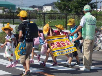 今朝も早朝より大変暑くなっています。暑くても雨でも必ず交差点に立っていただき子どもたちの安全確保に協力していただいている見守り隊の皆さんです。(西部幹線・前野方面)いつも大変ありがとうございます!