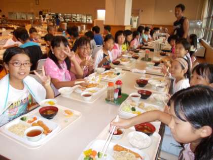 お待ちかねの夕食はバイキングです。 好きな物をとり、バランスよくお皿に盛りつけました。