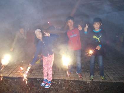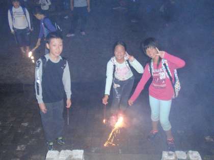 夜は、花火大会です。 グループでなかよく花火を分けて楽しみました。