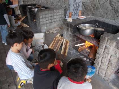 午後は、野外炊飯です。 かまど係・ごはん係・カレー係が、それぞれの分担を頑張りましたよ!