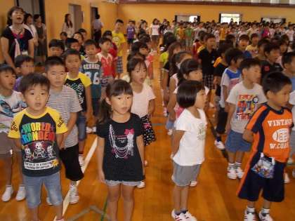始業式では、校長先生から夏休みのふりかえりと、2学期に向けて、生活のリズムを整えること。目標をしっかり持つことなどのお話がありました。