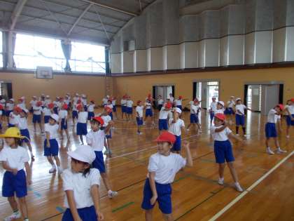 ダンス練習開始!【9月3日(火)の2年生】 公開日 2013/09/03 更新日 2013/09/03 2年 今日からの体育は、1・2年生合同で行われます。運動会で発表するダンスの練習が始まったからです。子どもたちは、とても楽しく元気に踊っていました。しかし、動きのスピードが速く、まだまだ音楽に合わせてうまく踊ることができません。これから、練習を重ねて、運動会本番では元気あふれるダンスを発表できるように願っています。1・2年生のみなさん頑張りましょう。