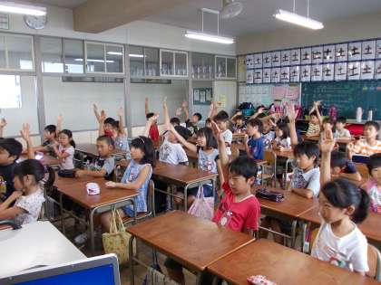 新しい英語の先生と勉強したよ(9月4日 3年生) 公開日 2013/09/04 更新日 2013/09/04 3年 2学期から新しい英語の先生がやってきました。ルシア先生です。自己紹介をしてから、「数」の英単語を勉強しました。大きな声で数を数えたり、ミニゲームをしたりして、楽しく学ぶことができました。 元気いっぱいの3年生、これからの英語の時間も楽しみです。