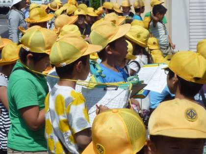 町探検2回目「東コース」 5月23日(金)3年生 公開日 2014/05/23 更新日 2014/05/23 3年 今回は、校区の東の果て、宝生方面まで足をのばしました。 住宅街を抜け、大きな会社倉庫が並ぶ宝生地区を見て回りました。子どもたちからは、「こんなに遠くから登校している子がいるんだなあ」と、驚く声も聞けました。 まだまだ校区には知らないことがいっぱいです。 これからもしっかり調べていきましょう。次はどっちへ行こうかな。