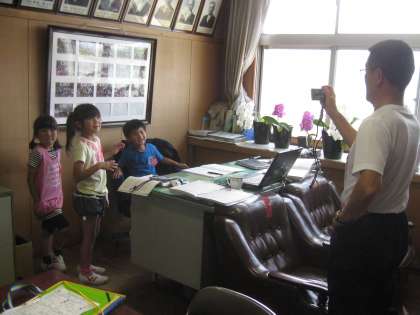 学校探検です!その1 【5月23日(金)1年生】 公開日 2014/05/23 更新日 2014/05/23 1年 1年生だけでの学校探検、第2回目です。3つの掟を守って出発しました。でも、やっぱり子どもたちは興奮を抑えられず、「わあー、すごい機械がいっぱい!」放送室をのぞいての第一声です。出会う友達に何やら、ひそひそと。後で聞いたみると、「校長先生の部屋は、不思議なものがあるよ。」「視聴覚室は、クジャクがいるよ。」でした。まるで伝言ゲームです。今回もいっぱい発見できたようです。