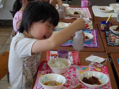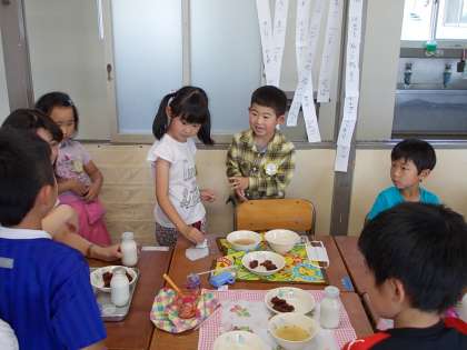 その3 公開日 2014/05/28 更新日 2014/05/28 校長室より 移した後はきれいに溶かさなくてはおいしくなりません。ストローを使いかき混ぜています。キャップをしっかり締めてシェイクしている子もいました。こぼしてもみんなで協力して始末することができますよ。