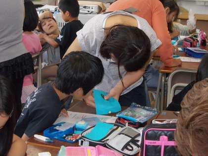 針の扱いは授業で頑張りましたが、今日はお母さんを中心に、お父さんとみんなで力を合わせて作りました。