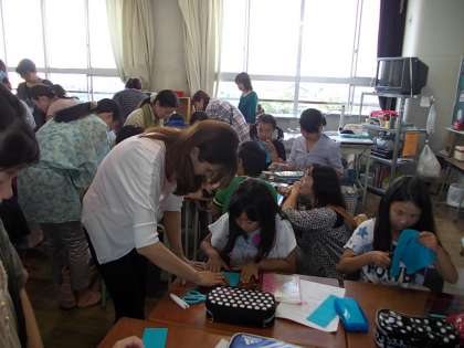 ふれあいの花が咲きました!【6月14日(土)】 公開日 2014/06/14 更新日 2014/06/14 校長室より 【5年生】 公開日の最後を飾り各学年でふれあい教室を開催しました。1時間目は5・6年生です。親子の触れ合いがたくさん見られました。(5年生ティッシュカバーづくり)