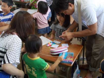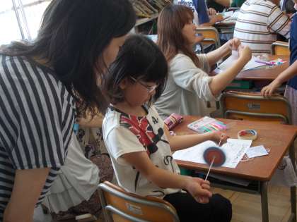 親子で仲良くふれあいながらビュンビュンごまを作っていました。