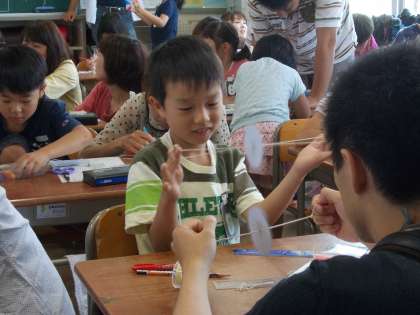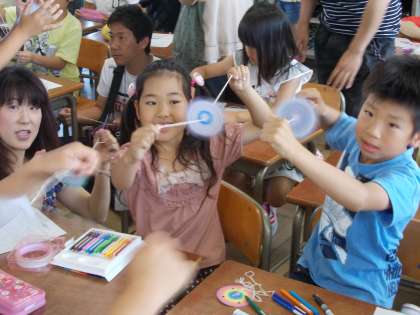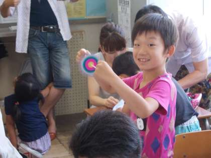 コマが勢い良くまわり、模様がかわることに驚いていました。