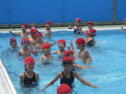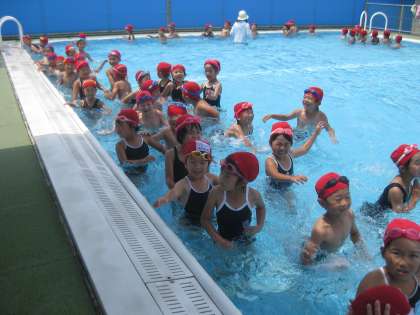 初めてのプール! 公開日 2014/06/17 更新日 2014/06/17 1年 浅井中小学校1年生、初めての水泳(水あそび)の授業が行われました。朝から子どもたちは、「プールだよね!」「うん、もう待てない!」「早く2時間目にならないかな?」と本当に楽しみにしていました。授業の初めにみんなで約束の確認をしました。楽しいプールタイムです。安全に安心に行うためにもみんなで約束をしました。さあ、いよいよ始まりますよ。