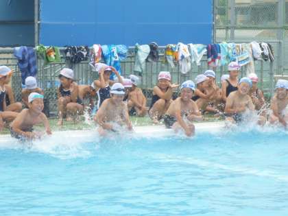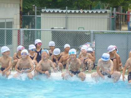 プールに入ったよ!《6月18日(水)の3年生》 公開日 2014/06/18 更新日 2014/06/18 3年 3年生になって初めてプールに入りました。子どもたちは初めてのプールを楽しみました。今回の天気は残念ながら曇りでやや寒かったです。次回は晴れてプール日和になるといいな。