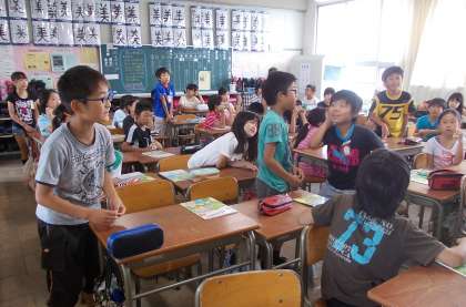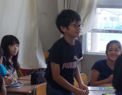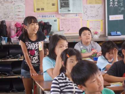 英語の授業は楽しいよ! 【6月18日(水)の4年生】 公開日 2014/06/18 更新日 2014/06/18 4年 今日の英語の授業では、ゲームをしながら数の数え方を勉強しました。だんだんすらすら言えるようになってきました。