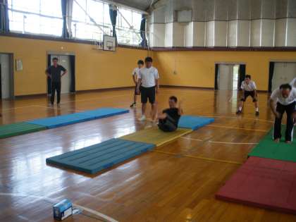 児童の下校後、体育指導についての学習会を行いました。体育科の先生から「集団行動のすすめかたや号令のかけ方」「効果的なストレッチのやり方」「マット運動でのアドバイスの仕方」などについて、教えてもらいました。膝を曲げるなどアドバイスの視点を教えてもらうと、自分自身もすぐにできるようになることがあり驚きました。子どもへの声かけも工夫した一言が大切であることがよく分かりました。授業ですぐに使えるネタもあり、明日からの授業に生かすことができる学習会でした。