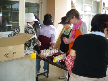 写真 下:非常食を確保するための炊き出し訓練の様子です。