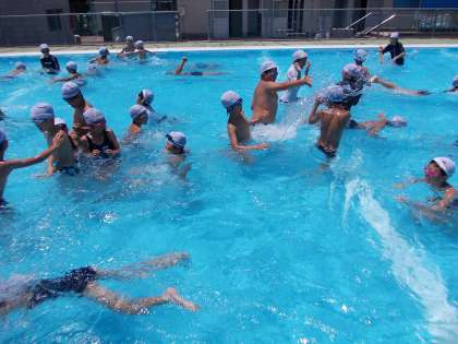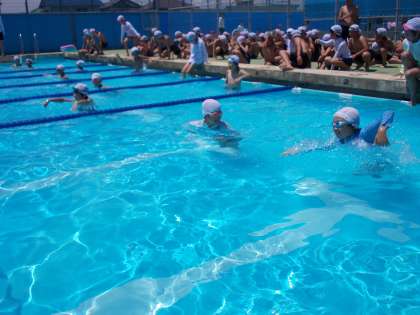 水泳検定をしました 7月1日(火)の5年生 公開日 2014/07/01 更新日 2014/07/01 5年 今日は、最後の水泳の授業。 お天気に恵まれ、みんなこれまでの練習の成果を出し切ってがんばりました。 最後の自由時間では、友達と水をかけ合ったり、気持ち良さそうに泳いだり・・・楽しい時間を過ごすことができました。