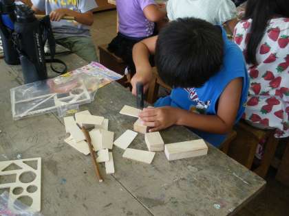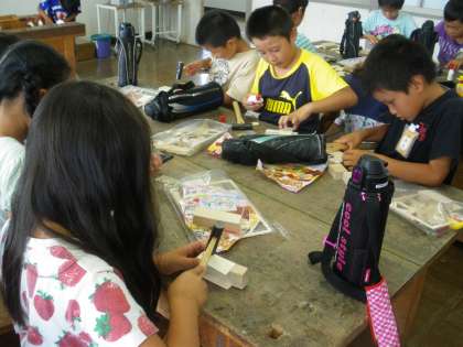 3年生の図工では、自分で釘打ちをしながら木を組み合わせておもちゃをつくっています。今日は、図工室ではじめて釘打ちに挑戦しました。まっすぐに釘を打たないために、斜めに釘が入ってしまう子、力が弱くてなかなか釘が入っていかない子、あたりが悪くて釘が曲がってしまう子など、子どもたちは一本の釘を打つのもとても苦労していました。それでも、うまく木と木をつなぐことができると「できたよ」と満面の笑顔で作品を見せてくれました。少しずつやり方を覚えると、あっという間に上達をするのも子どもたちのすごいところです。どんな作品が完成するか、とても楽しみです。